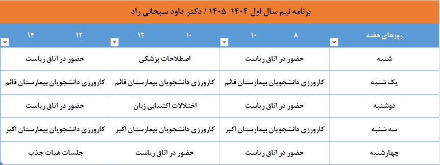 دکتر داود سبحانی راد  استاددکترای تخصصی گفتاردرمانی عضوهیأت علمی گروه گفتاردرمانی دانشکده علوم پیراپزشکی و توانبخشی