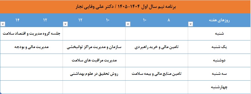 دکتر علی وفایی نجار  استاددکتری تخصصی مدیریت خدمات بهداشتی و درمانی عضوهیأت علمی گروه علوم مدیریت و اقتصاد سلامت دانشکده بهداشت
